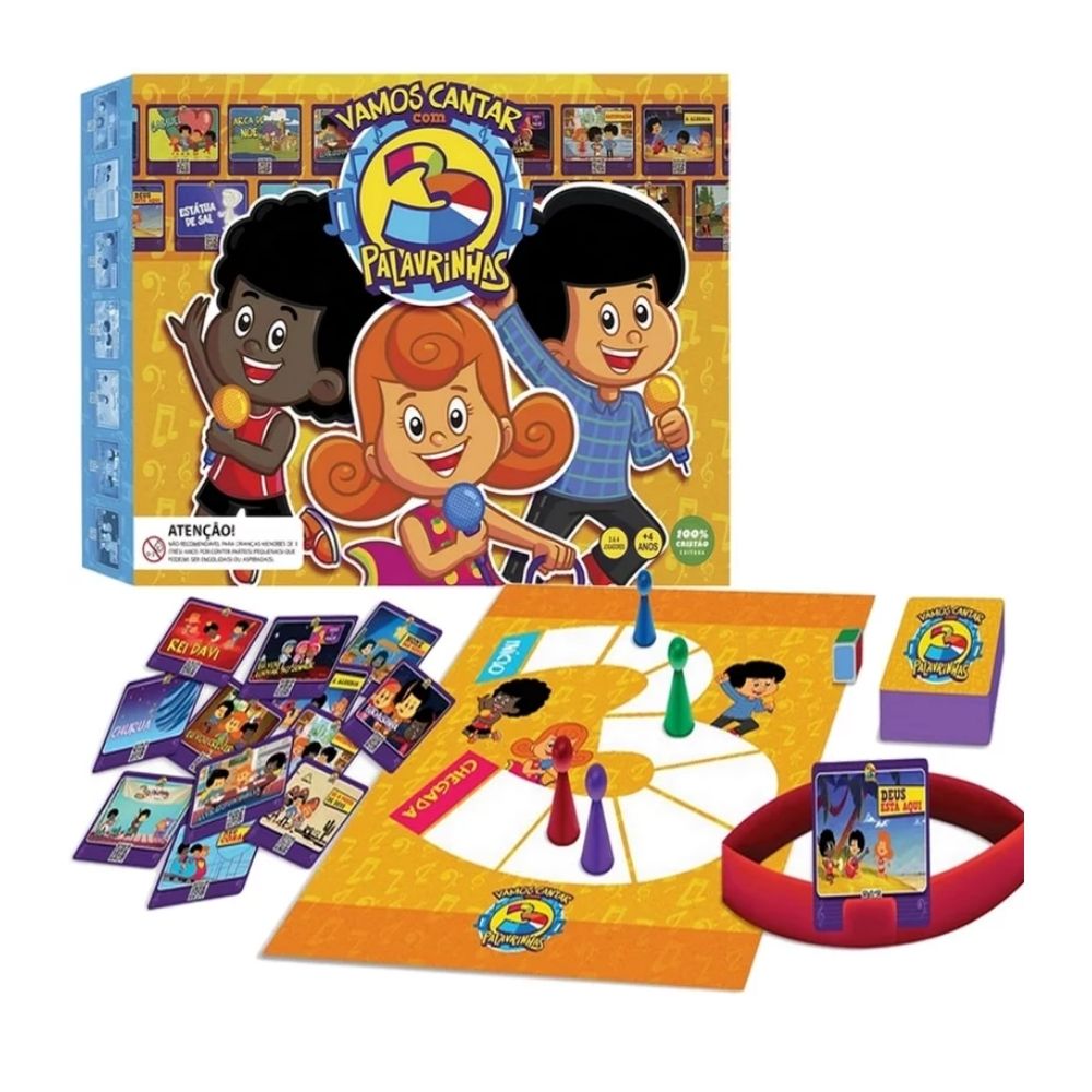 O único Jogo de Tabuleiro com a turma o 3 Palavrinhas, em que os participantes podem cantar e brincar juntos, aprendendo a Bíblia com muita diversão.