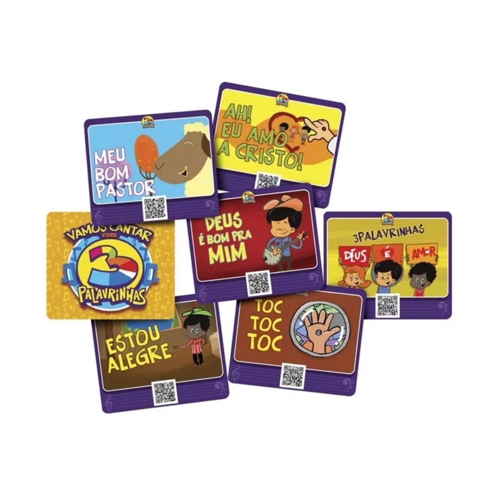 ►Jogo de Tabuleiro inédito com a turma do 3 Palavrinhas ►Cada carta possui um QR code para acessar a música ►Formato lúdico com tiras que afixam “na testa”