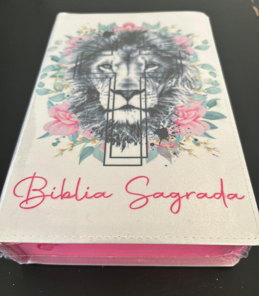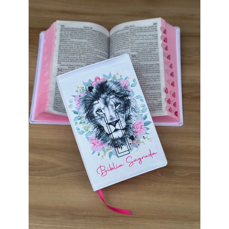 Biblia ARC Leao Branco Floral Cruz